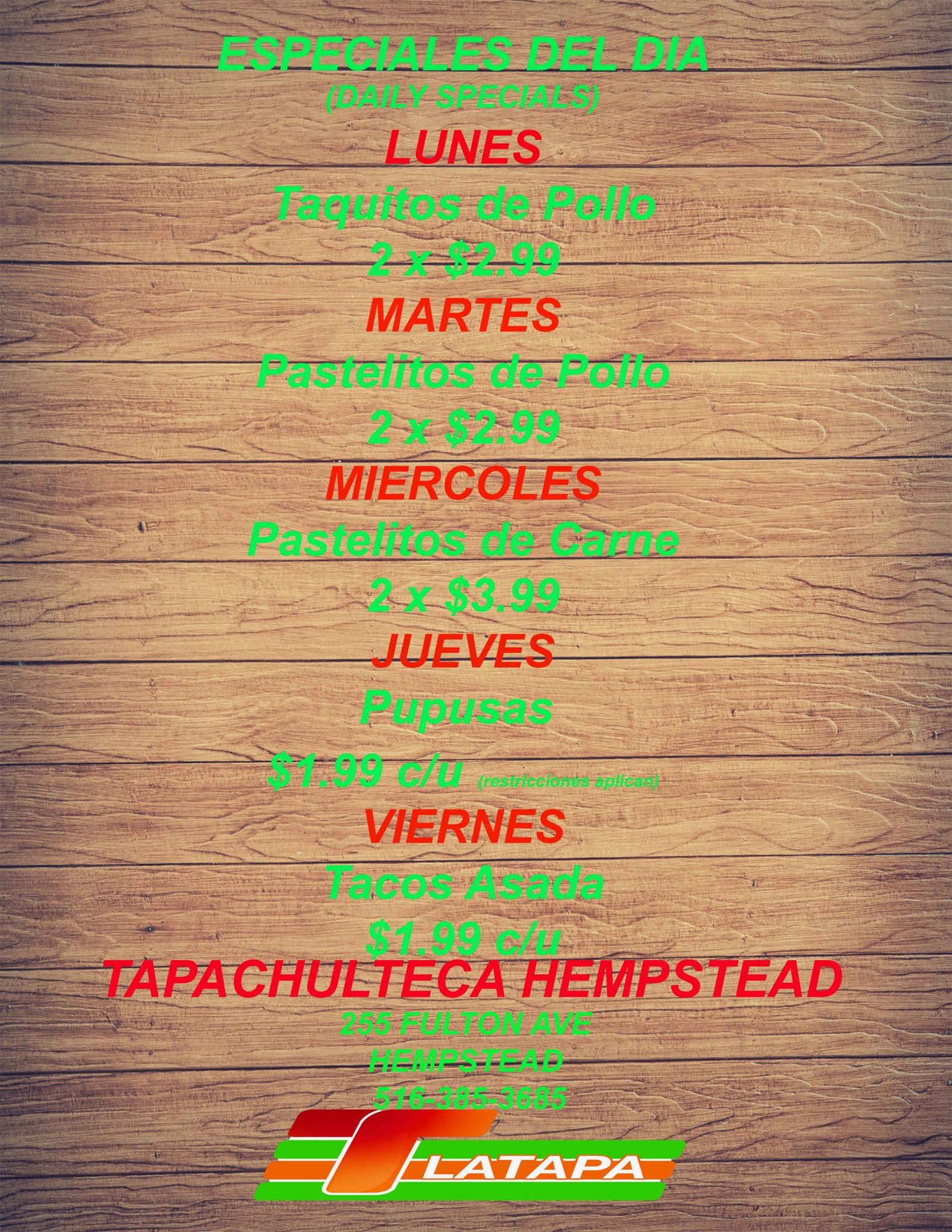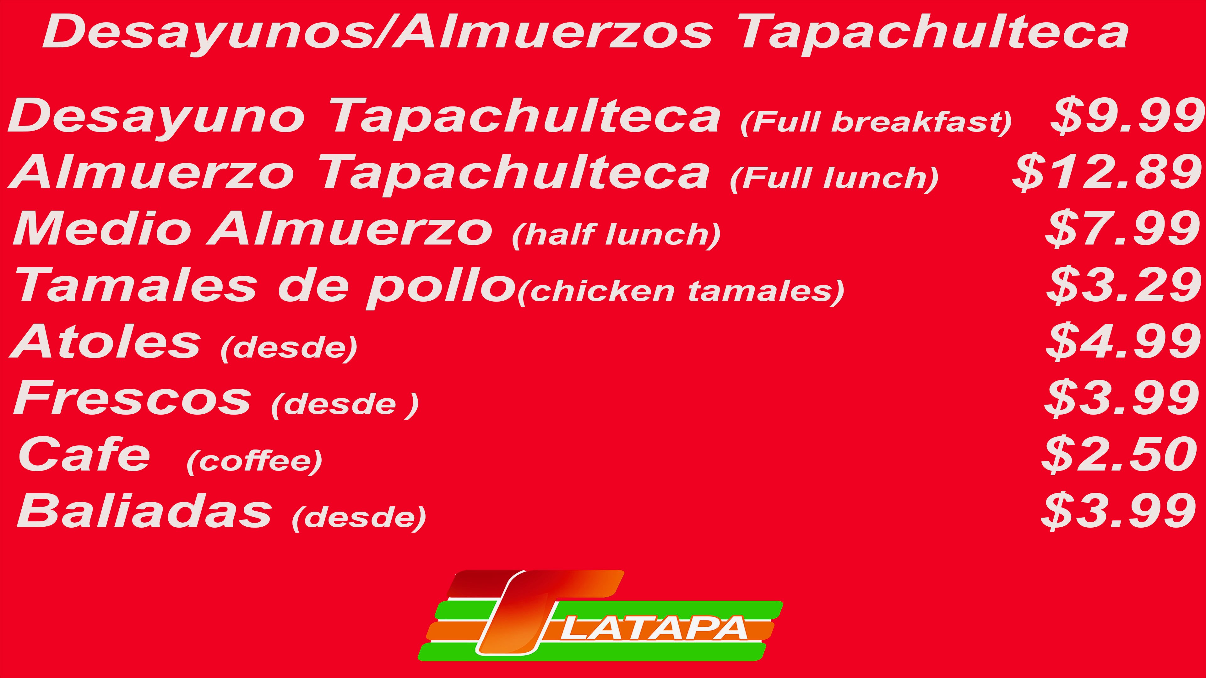 Has click en foto para leer nuestra menus!!!